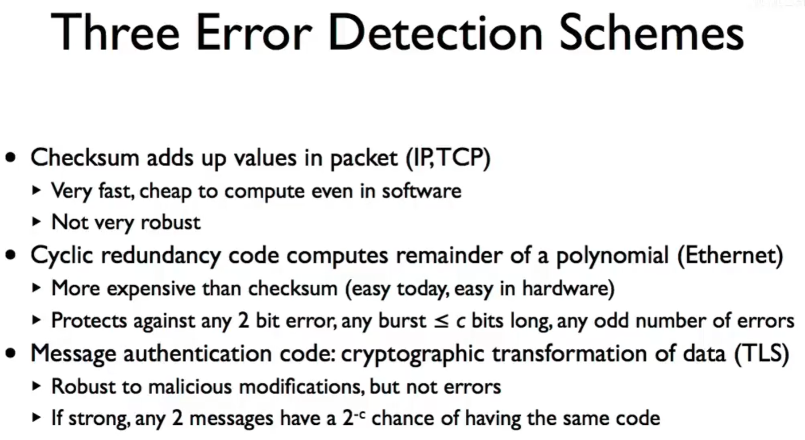 理想状况是,传输中出现错误,检测到错误,拒收文件然后重新发送。